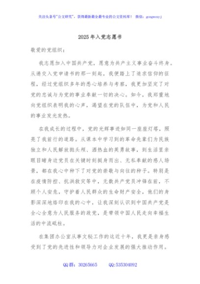 / 2025年入党志愿书