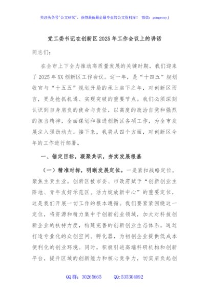 / 党工委书记在创新区2025年工作会议上的讲话