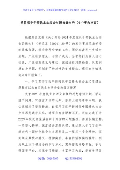 / 党员领导干部民主生活会对照检查材料(4个带头方面)