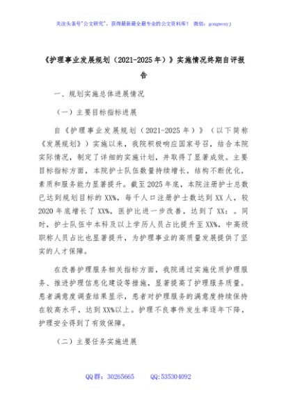 / 《护理事业发展规划(2021-2025年)》实施情况终期自评报告(最新)