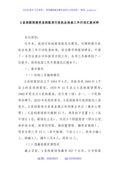 / X县档案馆接受省档案局行政执法检查三年行动汇报材料