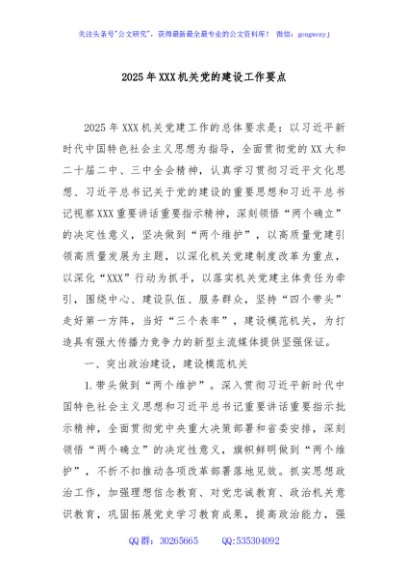 / 2025年XXX机关党的建设工作要点