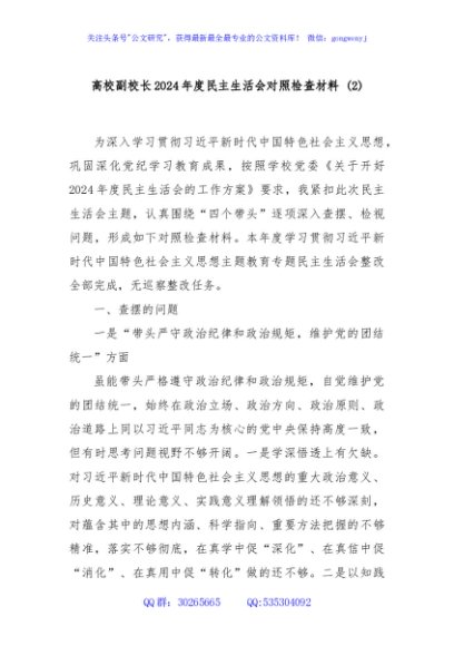 / 高校副校长2024年度民主生活会对照检查材料 (2)
