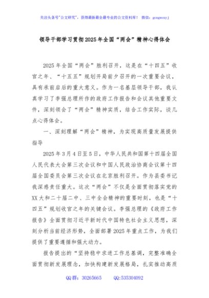 / 领导干部学习贯彻2025年全国“两会”精神心得体会