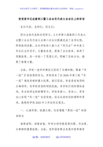 / 校党委书记在教职工暨工会会员代表大会会议上的讲话