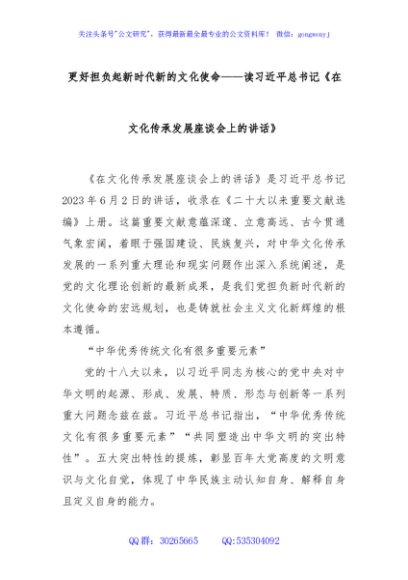 / 更好担负起新时代新的文化使命——读习近平总书记《在文化传承发展座谈会上的讲话》