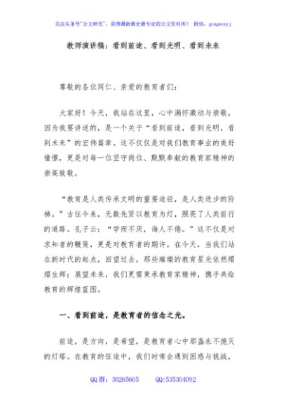 / 教师演讲稿:看到前途、看到光明、看到未来