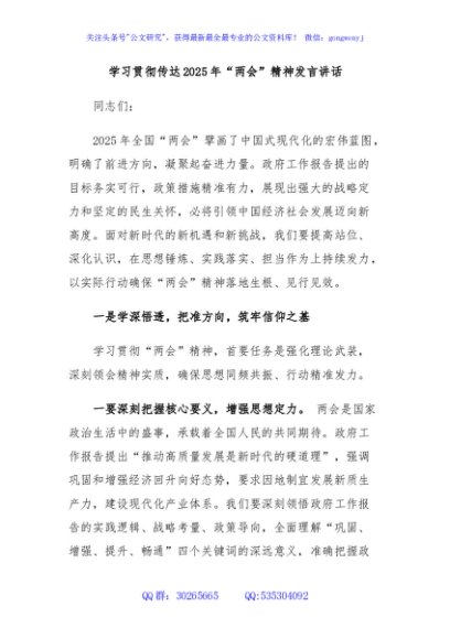 / 学习贯彻传达2025年“两会”精神发言讲话