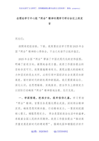 / 在理论学习中心组“两会”精神专题学习研讨会议上的发言