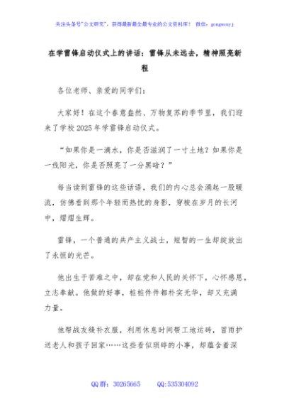 / 在学雷锋启动仪式上的讲话:雷锋从未远去,精神照亮新程