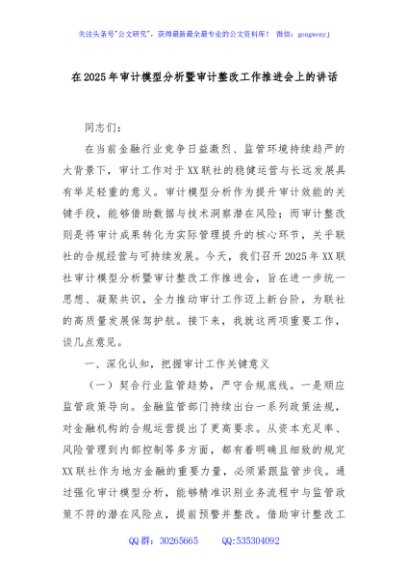 / 在2025年审计模型分析暨审计整改工作推进会上的讲话