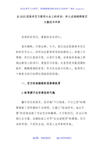 / 在2025届高考百日誓师大会上的讲话:淬火成钢铸辉煌百日鏖战书华章
