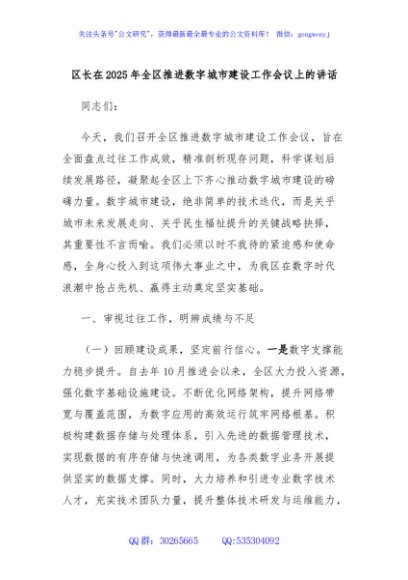 / 区长在2025年全区推进数字城市建设工作会议上的讲话