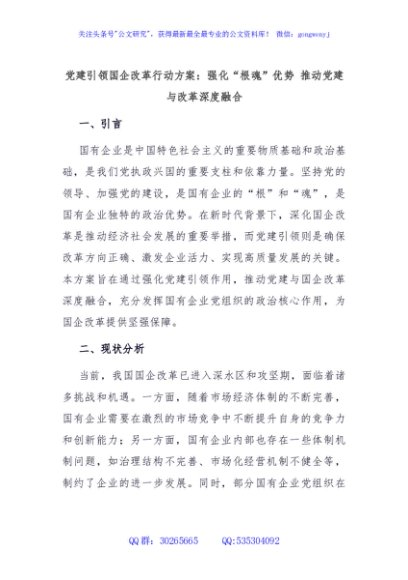/ 党建引领国企改革行动方案:强化“根魂”优势 推动党建与改革深度融合