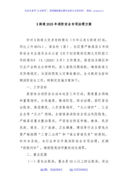 / X街道2025年消防安全专项治理方案