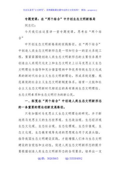 专题党课:在“两个结合”中开创生态文明新格局