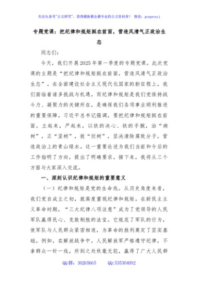 专题党课: 把纪律和规矩挺在前面, 营造风清气正政