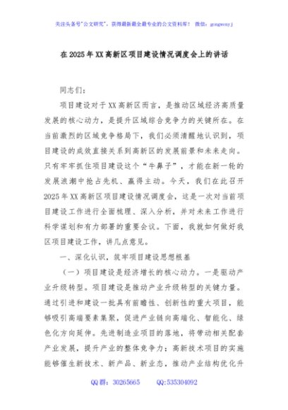 / 在2025年XX高新区项目建设情况调度会上的讲话