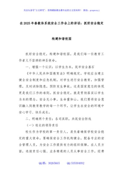 / 在2025年春教体系统安全工作会上的讲话:抓好安全稳定构建和谐校园