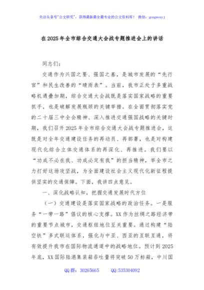 / 在2025年全市综合交通大会战专题推进会上的讲话