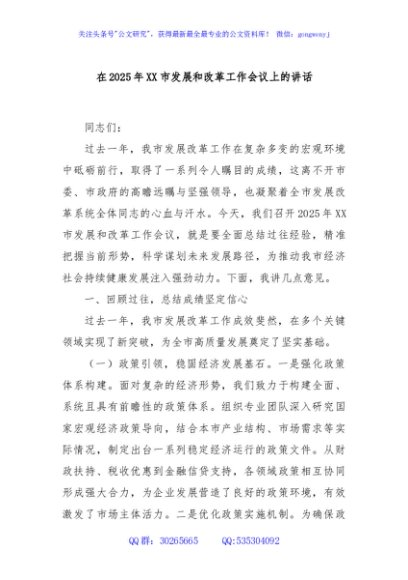 / 在2025年XX市发展和改革工作会议上的讲话