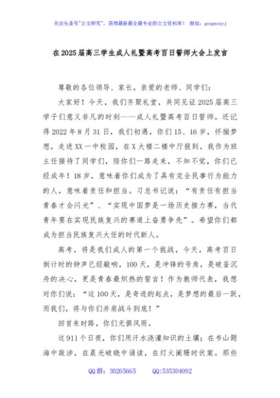 / 在2025届高三学生成人礼暨高考百日誓师大会上发言