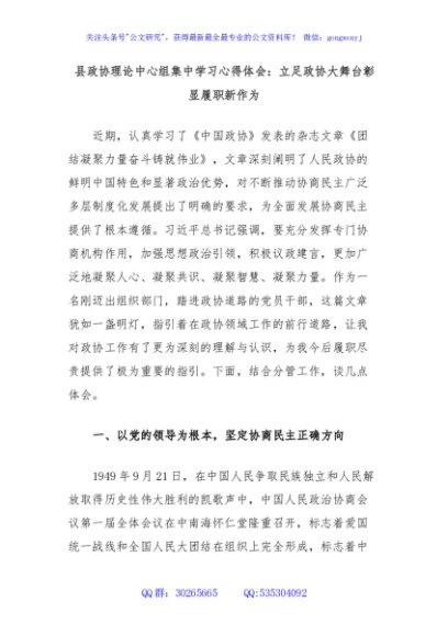 / 县政协理论中心组集中学习心得体会:立足政协大舞台彰显履职新作为