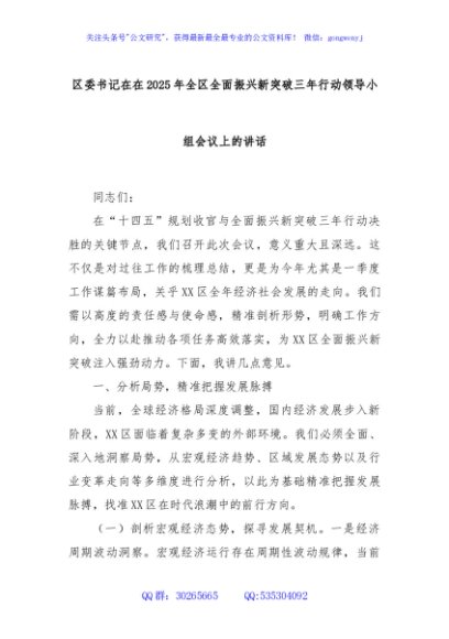/ 区委书记在在2025年全区全面振兴新突破三年行动领导小组会议上的讲话