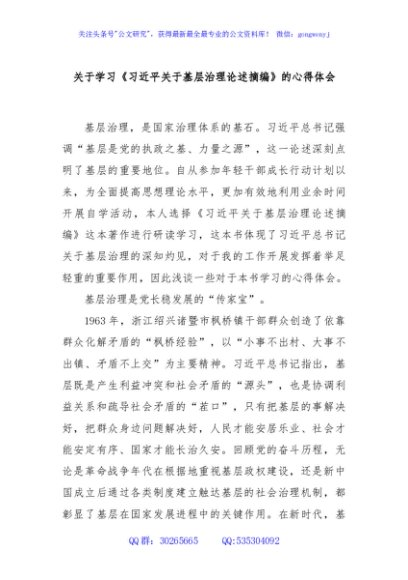 / 关于学习《习近平关于基层治理论述摘编》的心得体会