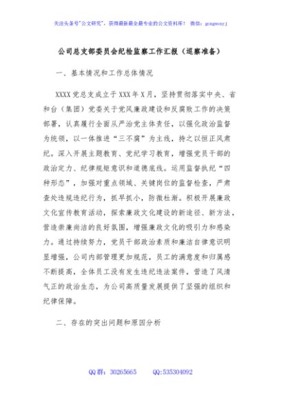 / 公司总支部委员会纪检监察工作汇报(巡察准备)