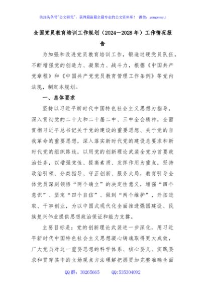 / 全国党员教育培训工作规划(2024-2028年)工作情况报告
