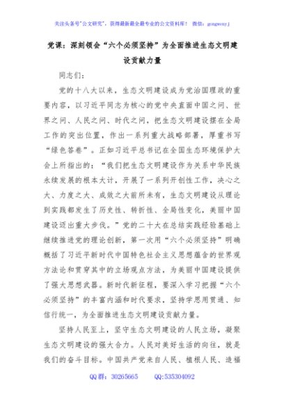 党课:深刻领会“六个必须坚持”为全面推进生态文明建设贡献力量