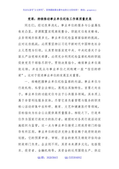 / 党课: 持续推动事业单位纪检工作高质量发展