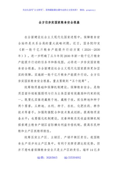 全方位夯实国家粮食安全根基