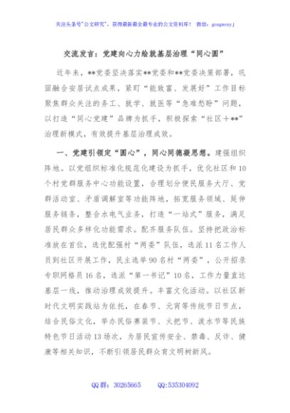 / 交流发言:党建向心力绘就基层治理“同心圆”