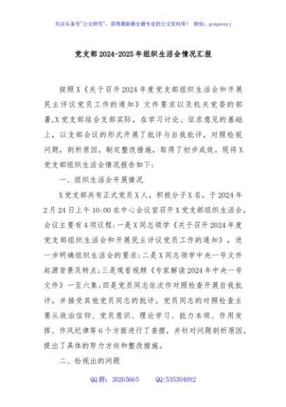 / 党支部 2024-2025 年组织生活会情况汇报