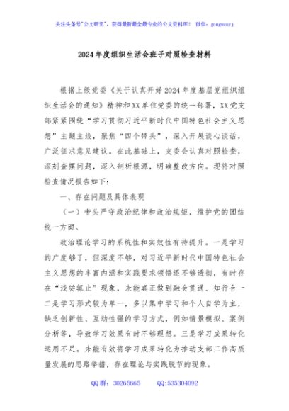 / 2024年度组织生活会班子对照检查材料