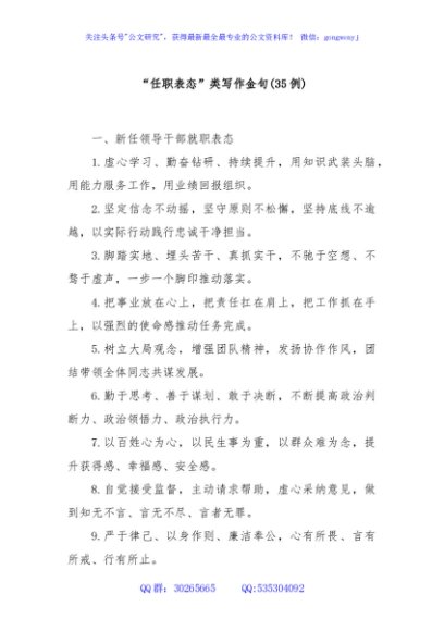 (35例)“任职表态”类写作金句