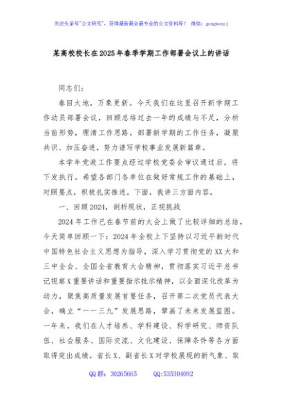 / 某高校校长在2025年春季学期工作部署会议上的讲话