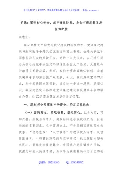 党课:坚守初心使命,筑牢廉政防线,为全市高质量发展保驾护航