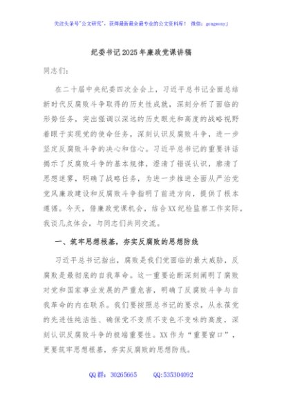 / 纪委书记2025年廉政党课讲稿