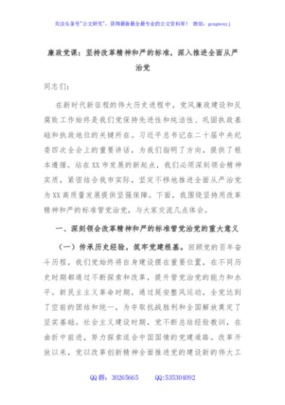 / 廉政党课:坚持改革精神和严的标准,深入推进全面从严治党