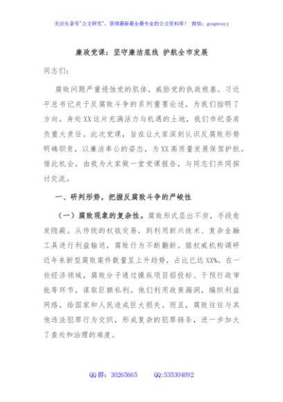 / 廉政党课:坚守廉洁底线 护航全市发展