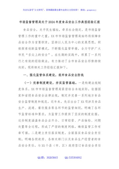 / 市场监督管理局关于2024年度食品安全工作典型经验汇报