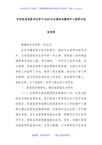 / 市发改局党组书记学习2025年全国两会精神中心组研讨发言材料