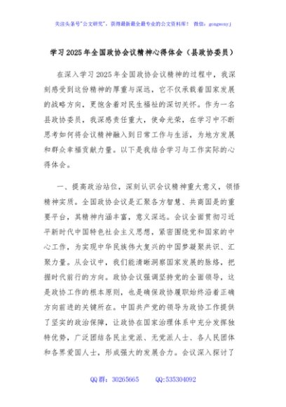 / 学习2025年全国政协会议精神心得体会(县政协委员)