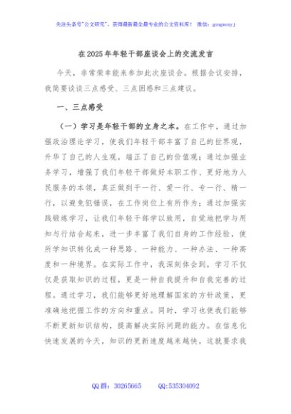 / 在2025年年轻干部座谈会上的交流发言
