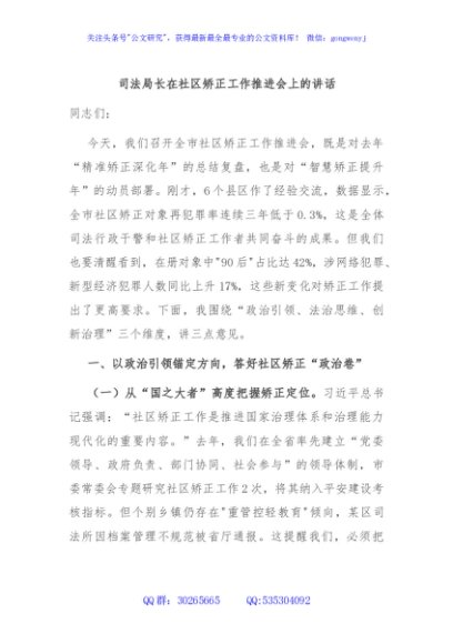 / 司法局长在社区矫正工作推进会上的讲话