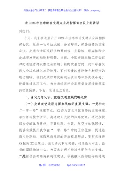 / 在2025年全市综合交通大会战指挥部会议上的讲话
