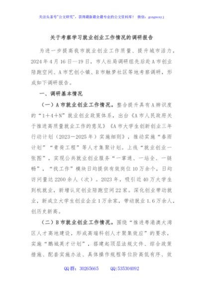/ 关于考察学习就业创业工作情况的调研报告